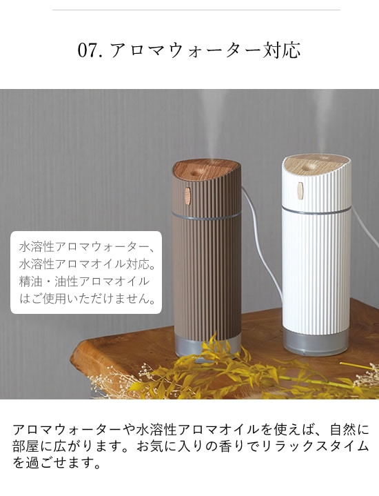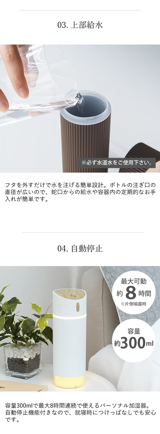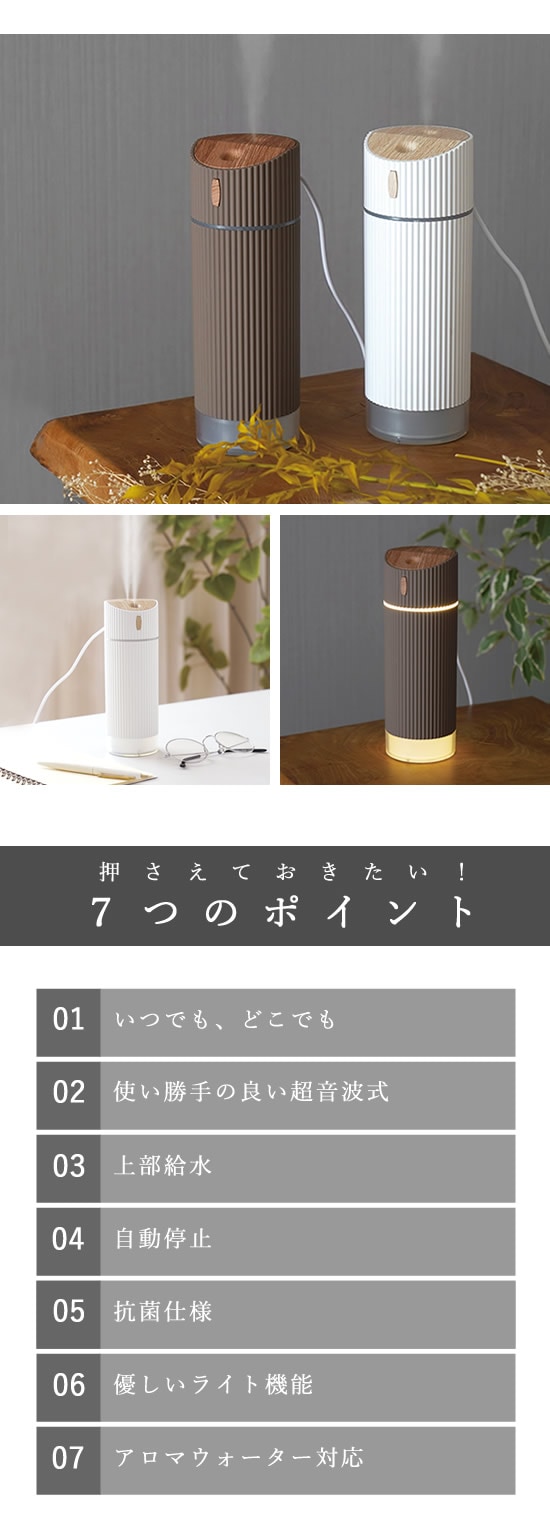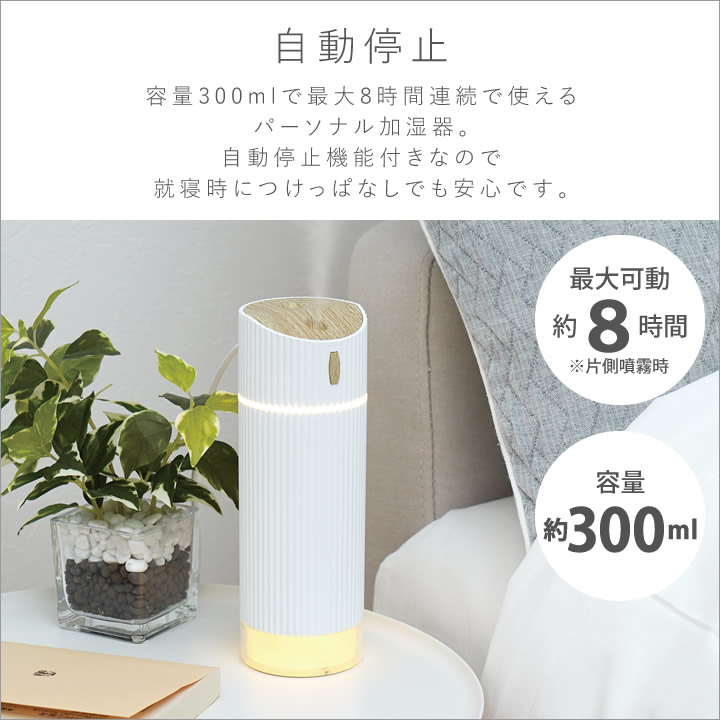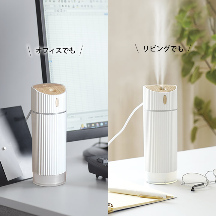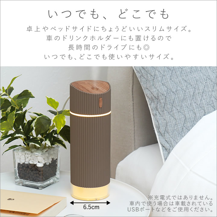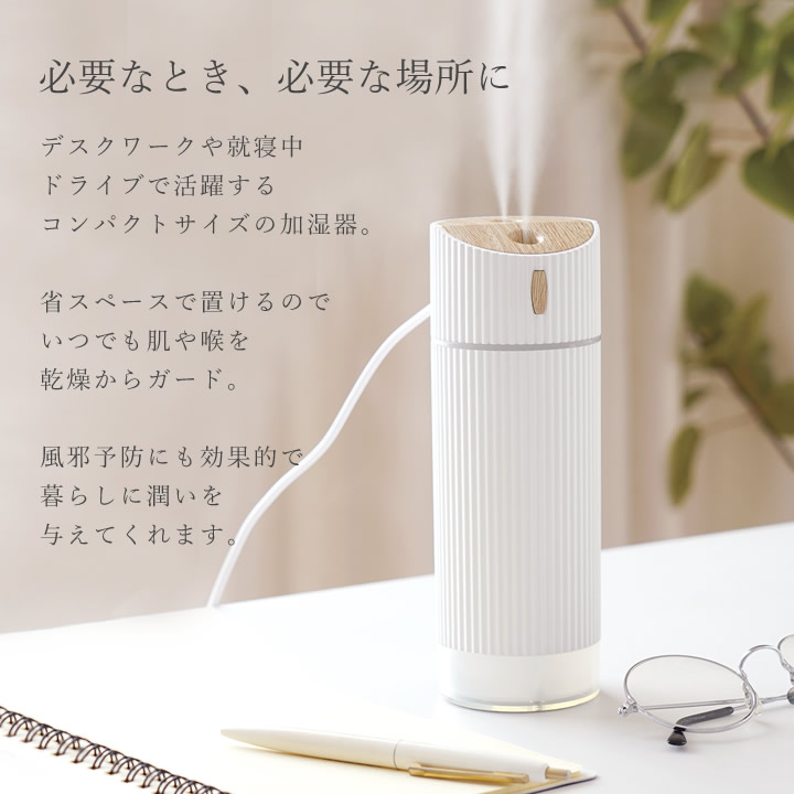 デスクワークや就寝中、ドライブで活躍するコンパクトサイズの加湿器。 |