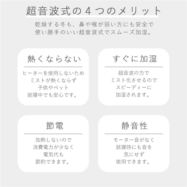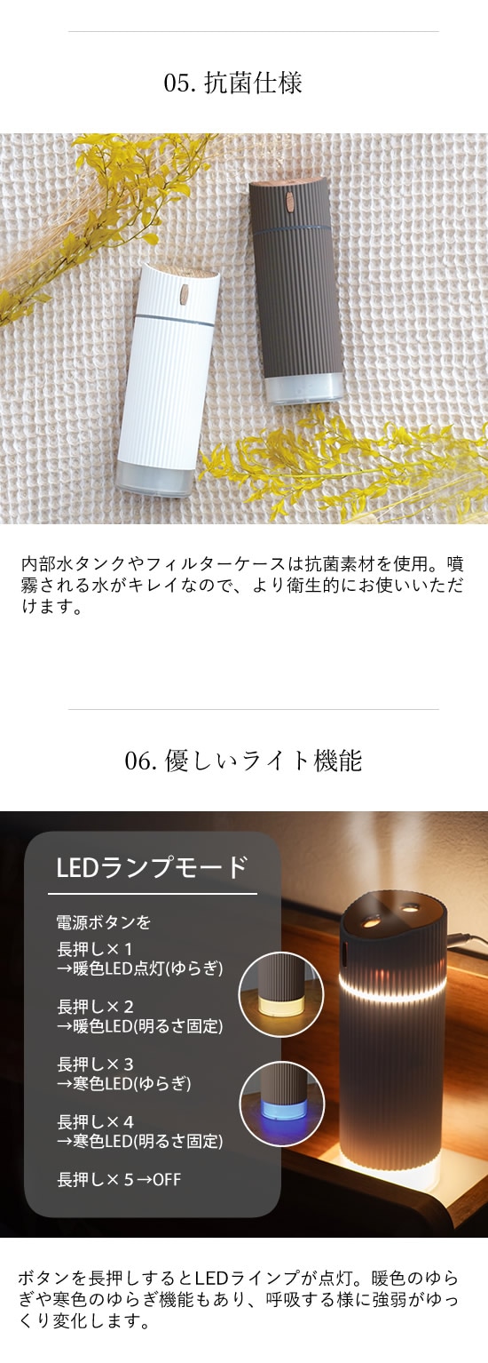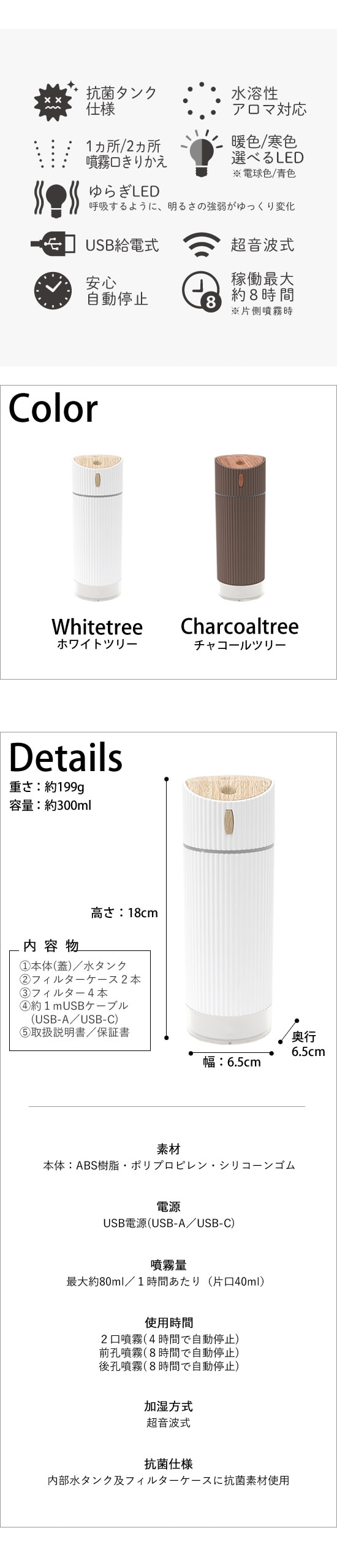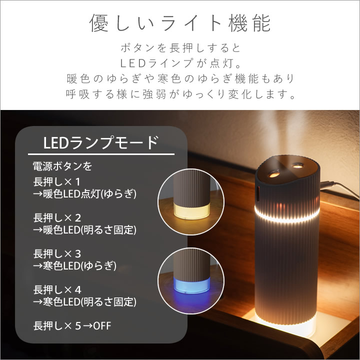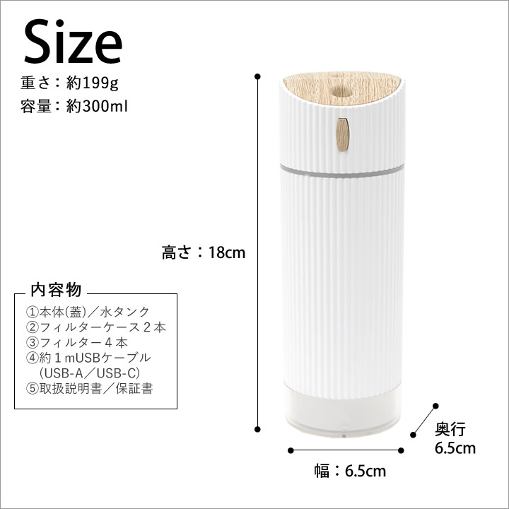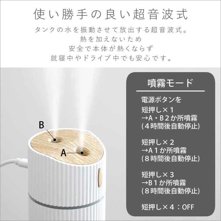 デスクワークや就寝中、ドライブで活躍するコンパクトサイズの加湿器。 |
