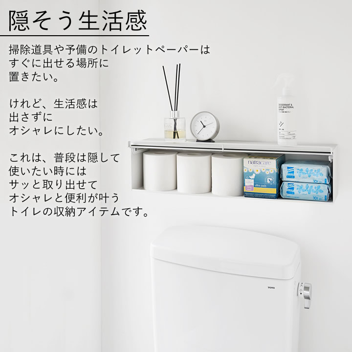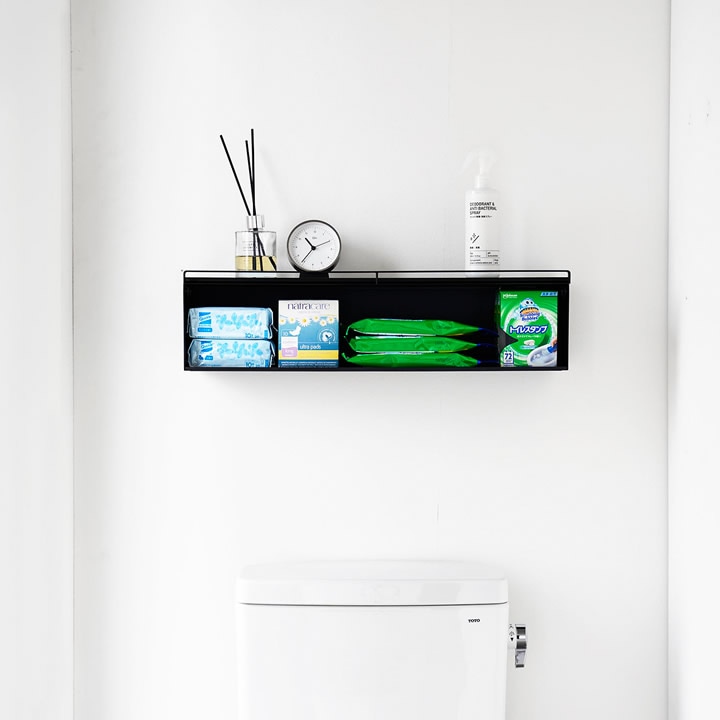 掃除道具や予備のトイレットペーパーは、すぐ出せる場所に置きたいけど、生活感は出さずにオシャレに収納したい。 |