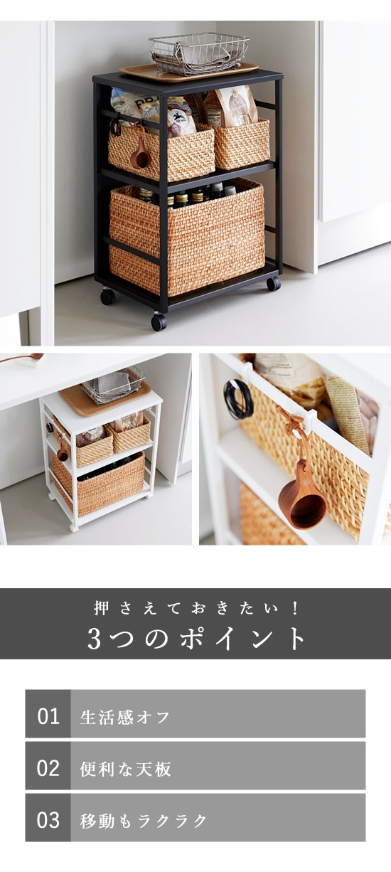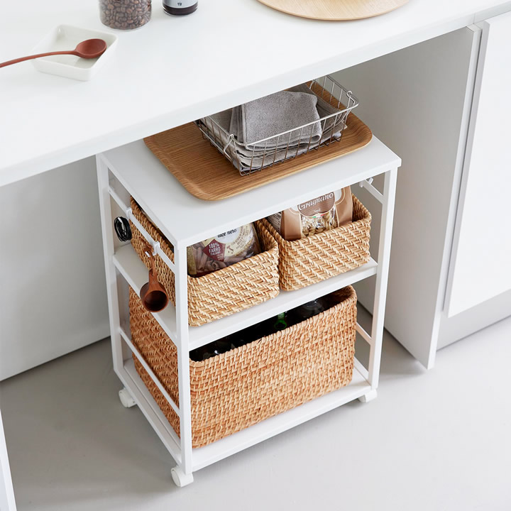 ![]() 目隠し板がついているので、普段使わない時は隠したままで◎キャスターがついているので、必要な時にクルッと裏返してサッと取り出せます。物が多くて散らかりがちな、キッチンやリビングにピッタリ。 ![]() |