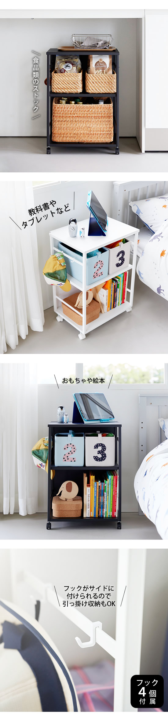 調味料のストックやペット用品、子供のランドセルなど、さまざまな物をひとまとめに収納できる多機能ワゴン。 |