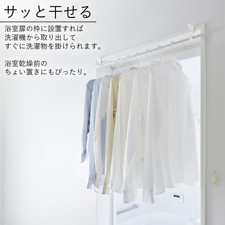 ![]() 浴室扉の 枠に設置すれば 洗濯機 から取り出してすぐに 洗濯物 を掛けられます。 浴室乾燥 前のちょい置きにもぴったり。 ![]() |