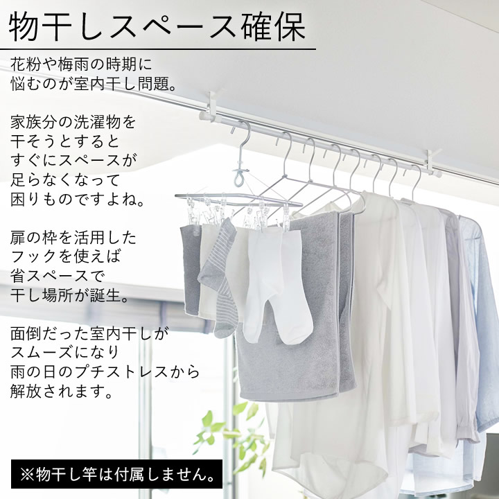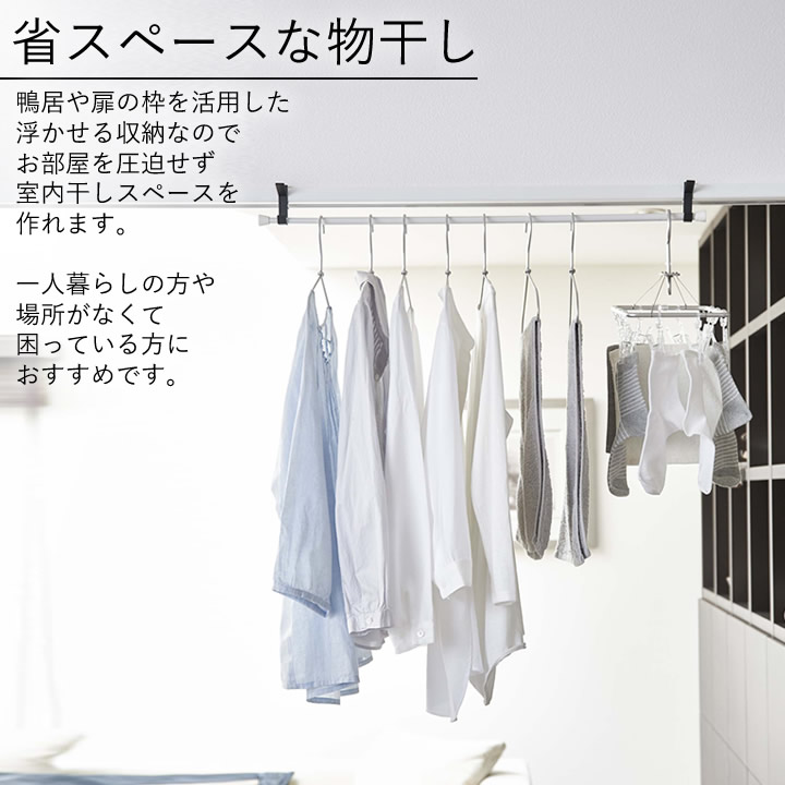 ![]() 鴨居 や 扉 の枠を活用した浮かせる 収納 なのでお部屋を圧迫せず 室内干し スペースを作れます。 一人暮らし の方や場所がなくて困っている方に おすすめ です。 |