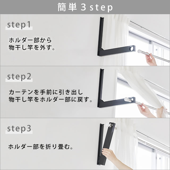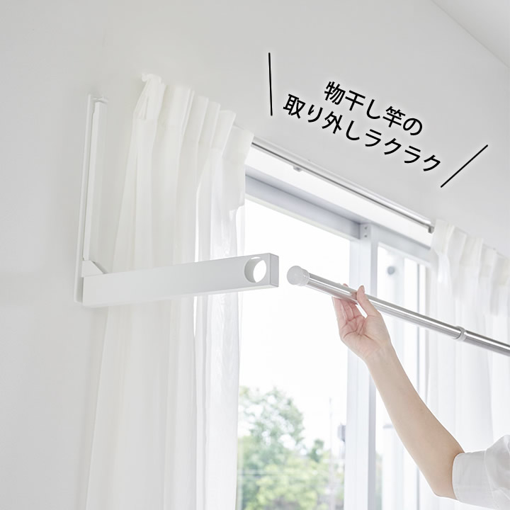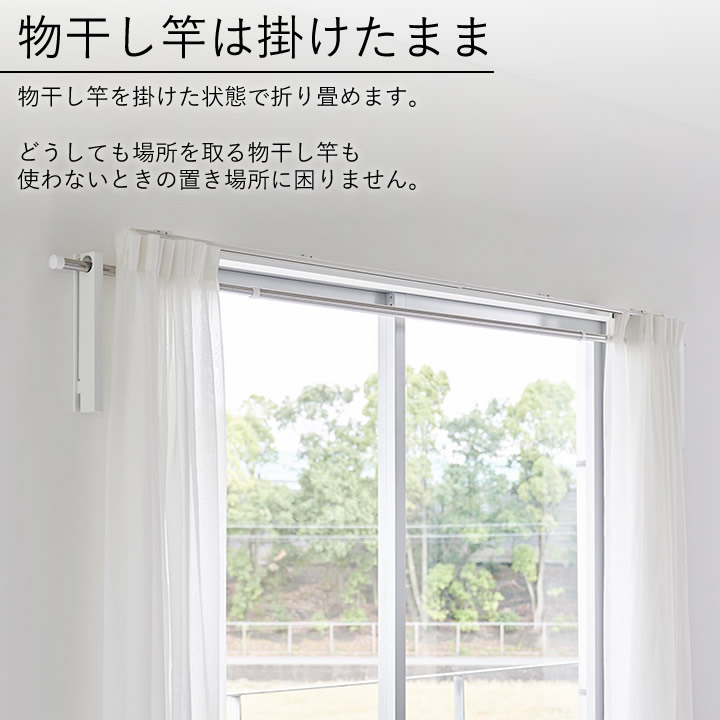 これは、 物干し竿 を掛けたまま 収納 できて 折り畳める 物干し竿ホルダー 。