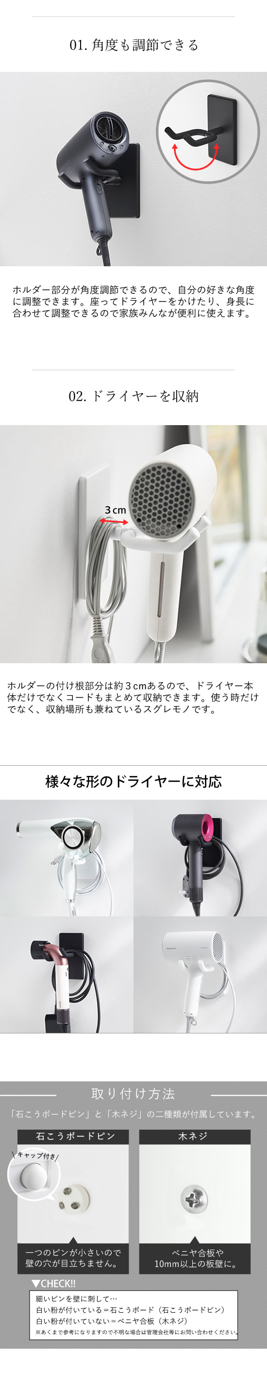 ウォール角度調節ドライヤーホルダー 石こうボード壁対応
