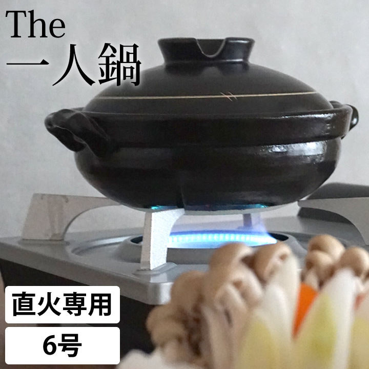 【ポイント10倍】 萬古焼 6号 純和風 土鍋 黒釉 mz2520-01