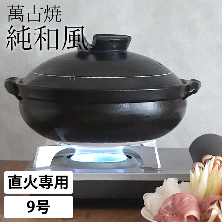 【ポイント10倍】 萬古焼 9号 純和風 土鍋 黒釉 mz2520-04