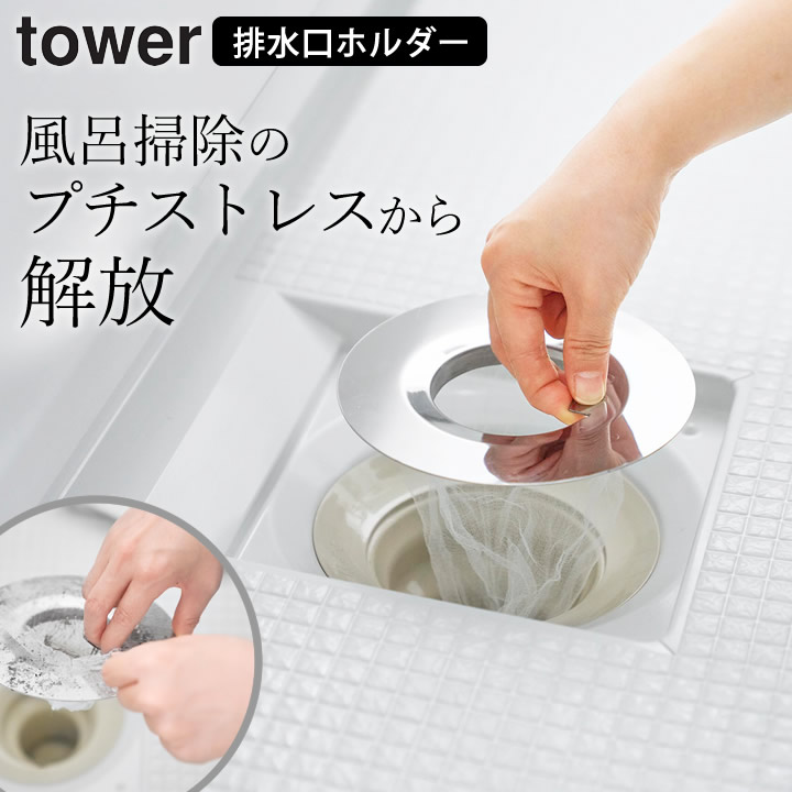 【ポイント10倍】水切りネットが交換しやすいお風呂の排水口ネットホルダー シルバー タワー 山崎実業 tower