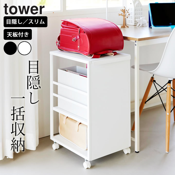 【ポイント10倍】 目隠しワゴン スリム 天板付き タワー tower 山崎実業