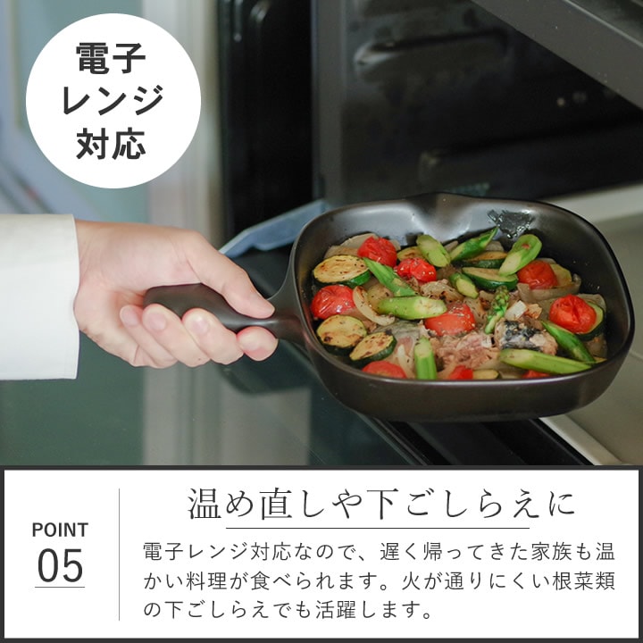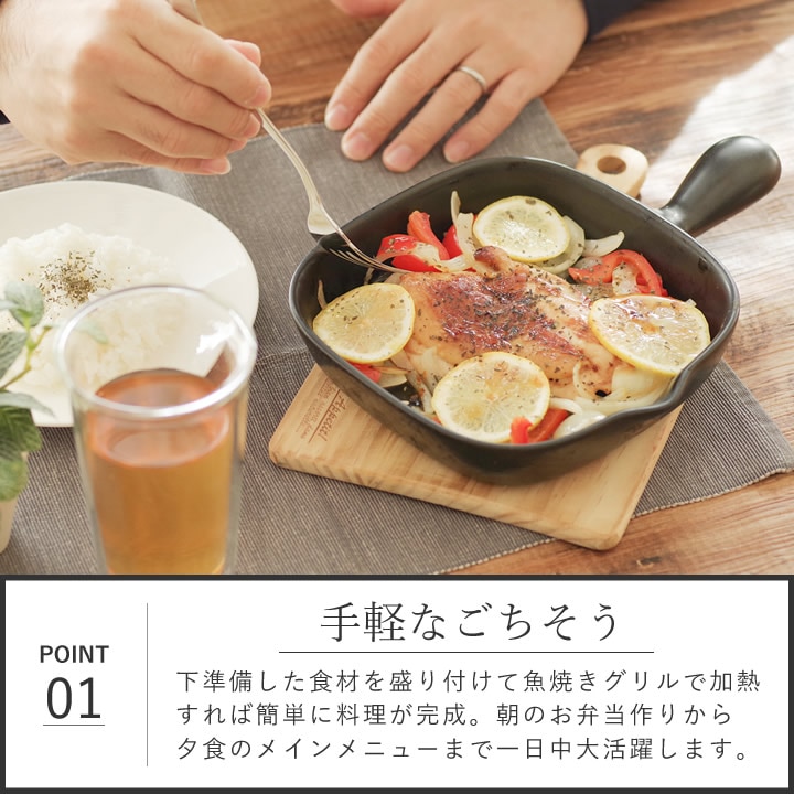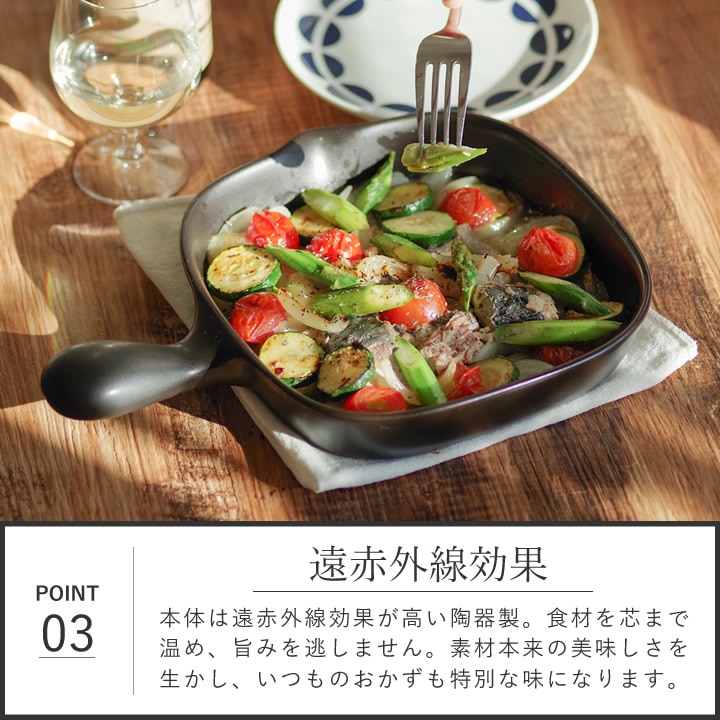 ![]() 調理後は 器 として使っても◎。そのまま食卓へ運べば、出来たてアツアツの おかず に食欲をそそられます。心躍るワクワクの食卓を演出します。 ![]() |
