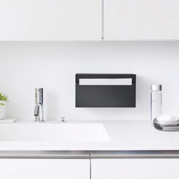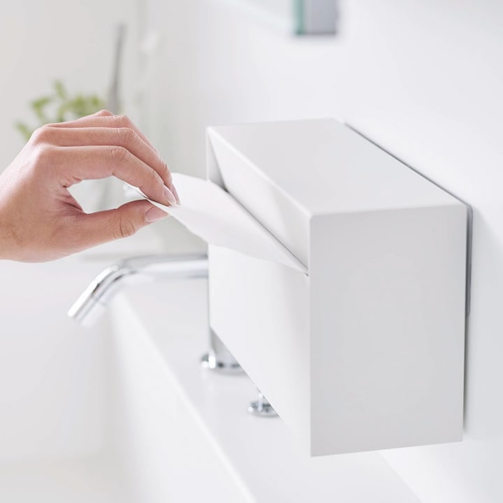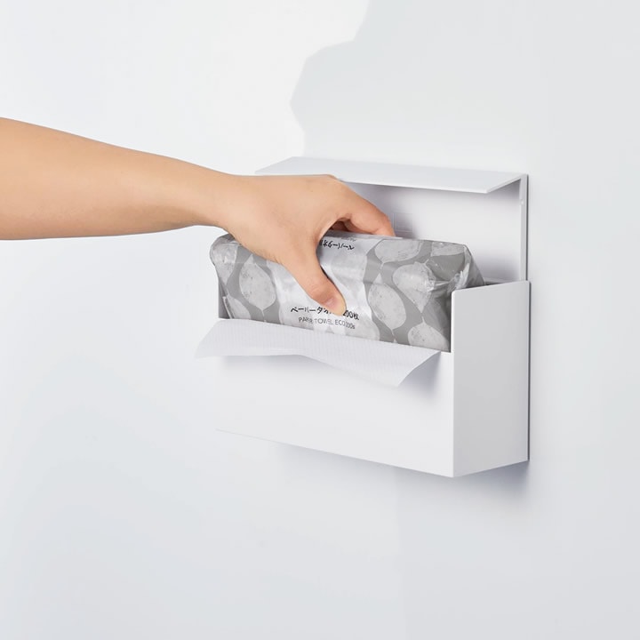 洗面所 で手を拭くときに使う ペーパータオル 。 |