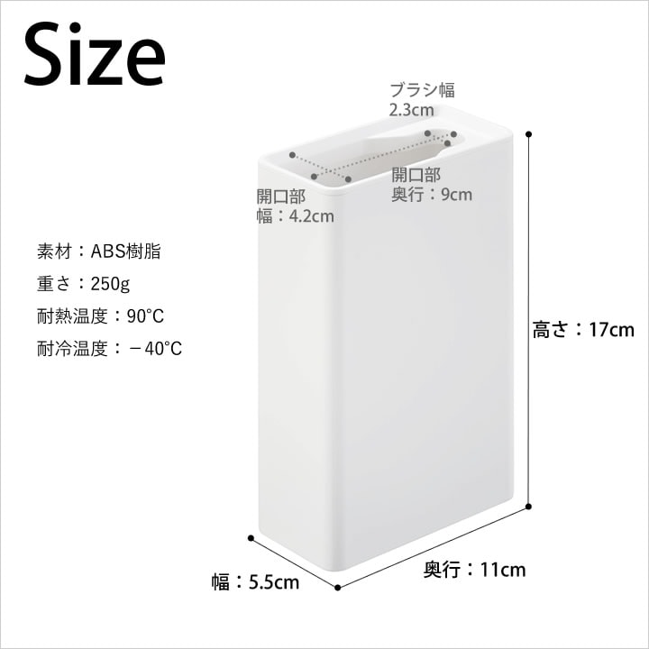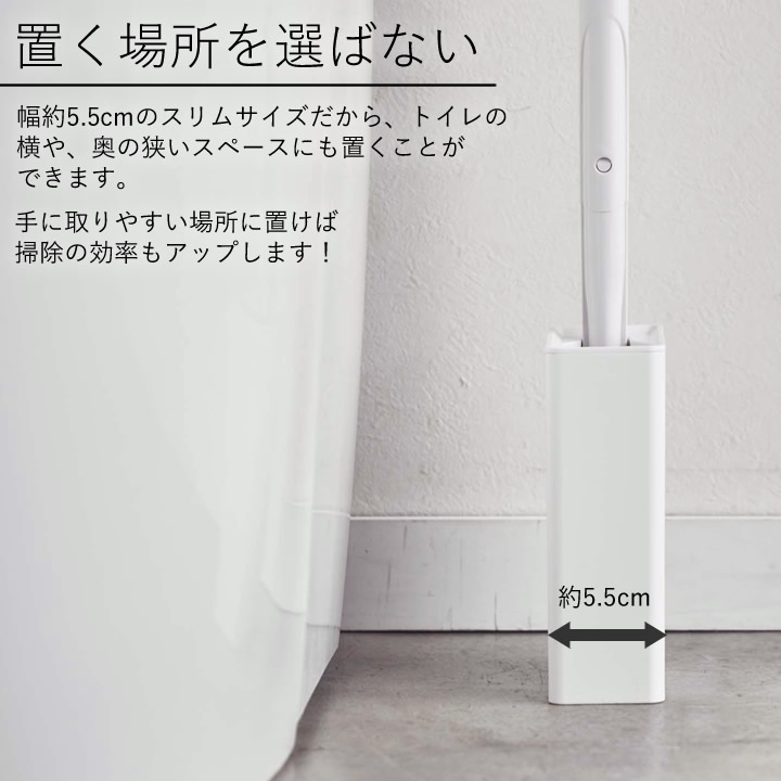 ![]() 幅約5.5cmの スリム サイズだから、 トイレ の横や、奥の狭いスペースにも置くことができます。手に取りやすい場所に置けば 掃除 の効率もアップします。 |