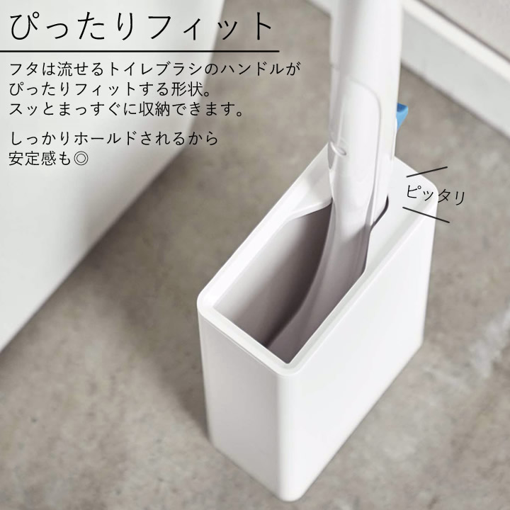 ![]() フタは 流せる トイレブラシ の ハンドル がぴったりフィットする形状。スッとまっすぐに 収納 できます。しっかりホールドされるから安定感も◎ |