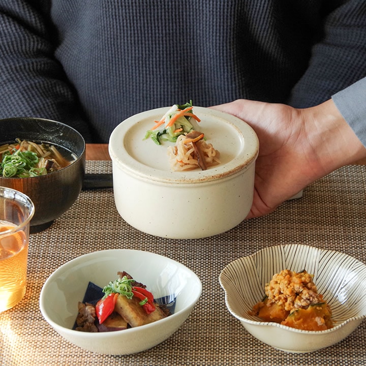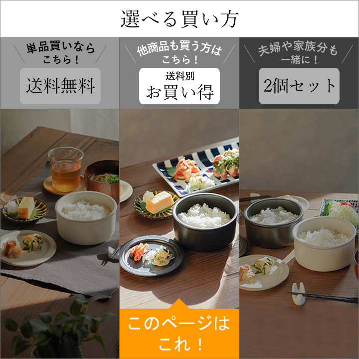 ![]() 蓋 が付いているので、わざわざラップをかける手間がなく、時短や 節約 にも。 釉薬 が塗られていない裏面は水分を吸着しやすく ご飯 がべちゃべちゃになるのを防いでくれます。 |