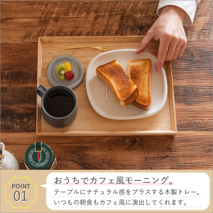 ![]() テーブル に ナチュラル 感をプラスする 木製 トレー 。いつもの 朝食 も カフェ風 に演出してくれます。 |