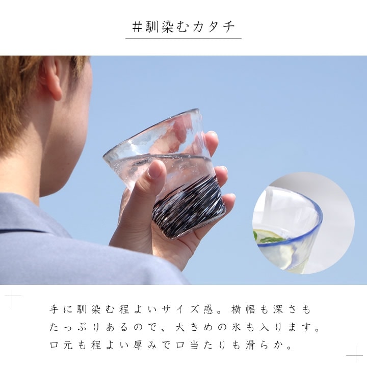![]() 手に馴染む程よい サイズ 感。横幅も深さもたっぷりあるので、大きめの氷も入ります。口元も程よい厚みで口当たりも滑らか。 |