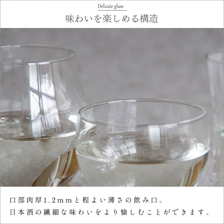 ![]() 口部肉厚1.2mmと程よい薄さの飲み口。 日本酒 の繊細な味わいをより愉しむことができます。 |
