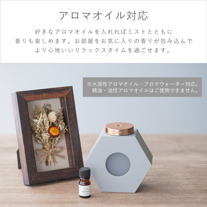 ![]() 好きな アロマオイル を入れれば ミスト とともに香りも楽しめます。 お部屋をお気に入りの 香り が包み込んでより心地いいリラックスタイムを過ごせます。