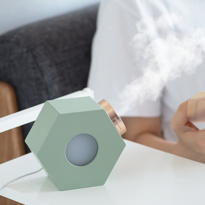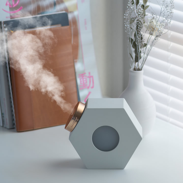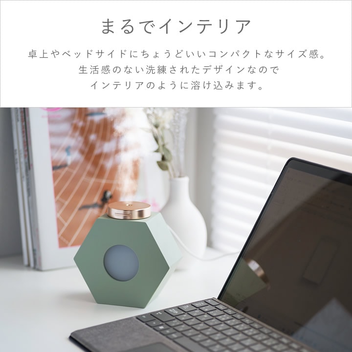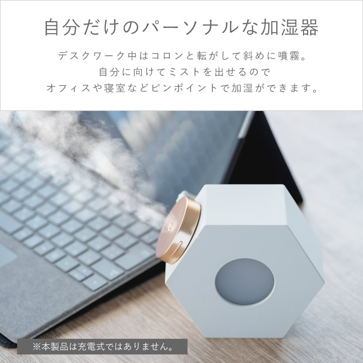 ![]() デスクワーク 中はコロンと転がして斜めに噴霧。 自分に向けて ミスト を出せるので オフィス や 寝室 などピンポイントで 加湿 ができます。