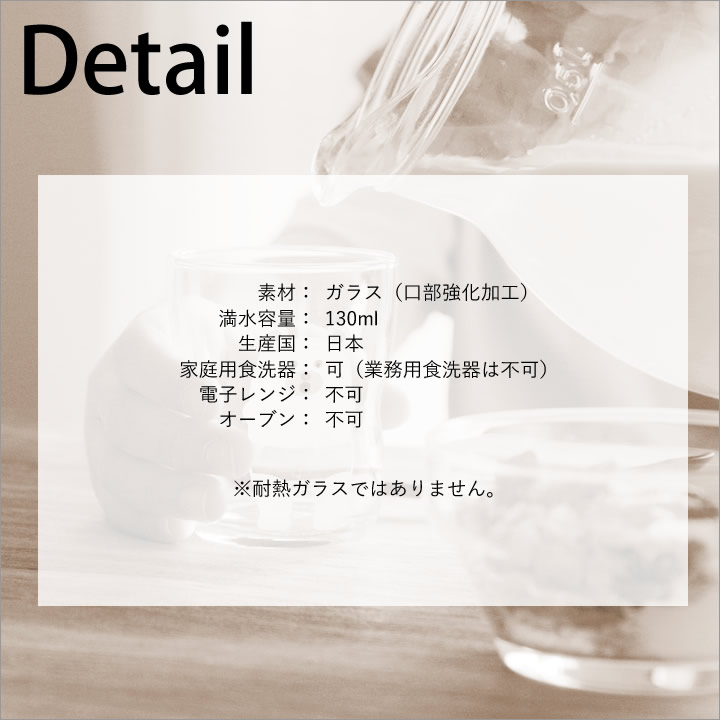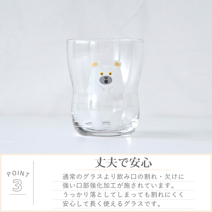 ![]() 通常の グラス より飲み口の割れ・欠けに強い口部強化加工が施されています。うっかり落としてしまっても割れにくく安心して長く使える グラス です。 |