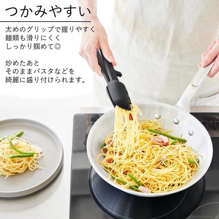![]() 太めのグリップで握りやすく、麺類も滑りにくくしっかり掴めて◎炒めたあと、そのままパスタなどを綺麗に 盛り付け られます。 |
