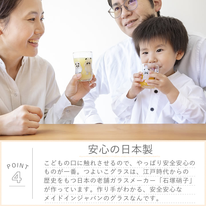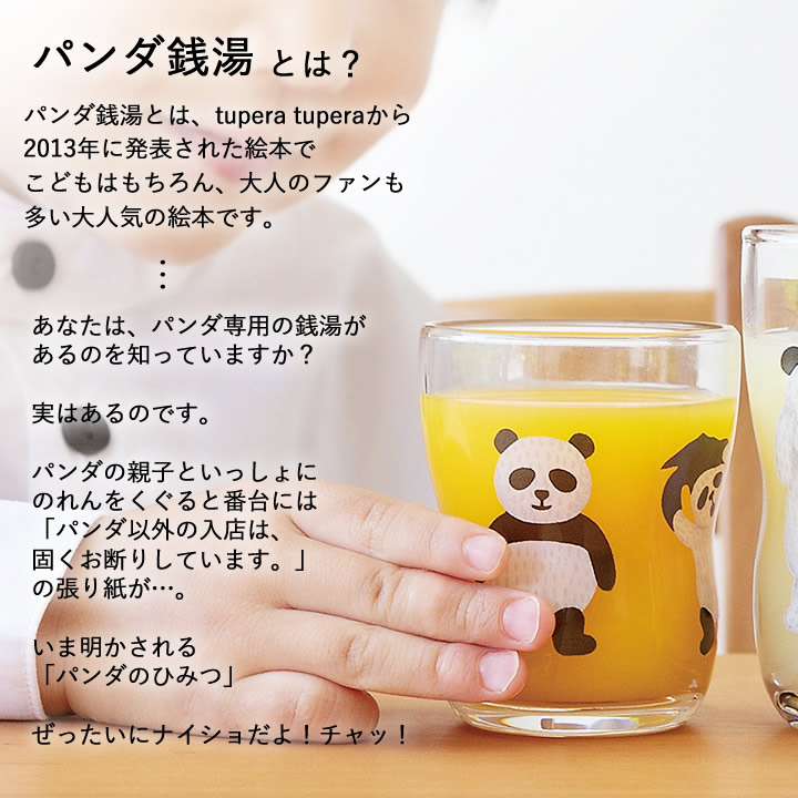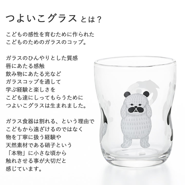 子ども の感性を育むために作られた 子ども のための ガラス の 器 。 絵本「 パンダ銭湯 」の パンダ が グラス になりました! 創作ユニット tupera tupera ( ツペラツペラ )と つよいこグラス が コラボ レーション。 こちらは パンダのこども の デザイン です。 子ども の手に合うサイズで、小さいころから ガラス に触れることができます。 かわいい 化粧箱 付きなので 出産祝い や 誕生日 プレゼント など ギフト としてもおすすめ◎