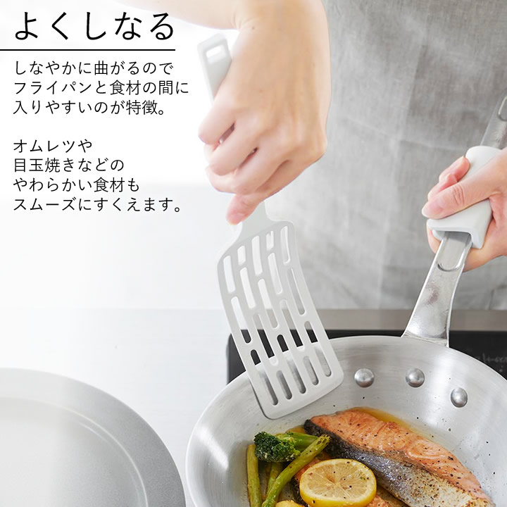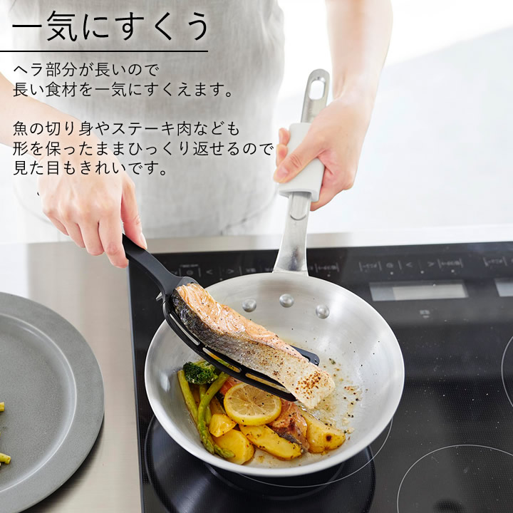 長さのある食材だと一気にすくいにくかったり、 ステンレス 製のものは フライパン を傷付けたりして使いづらいことも…。