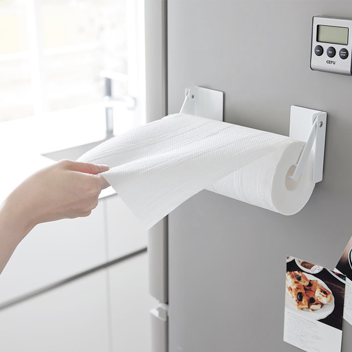 これは、 片手 でラクラク カット できる キッチンペーパーホルダー 。