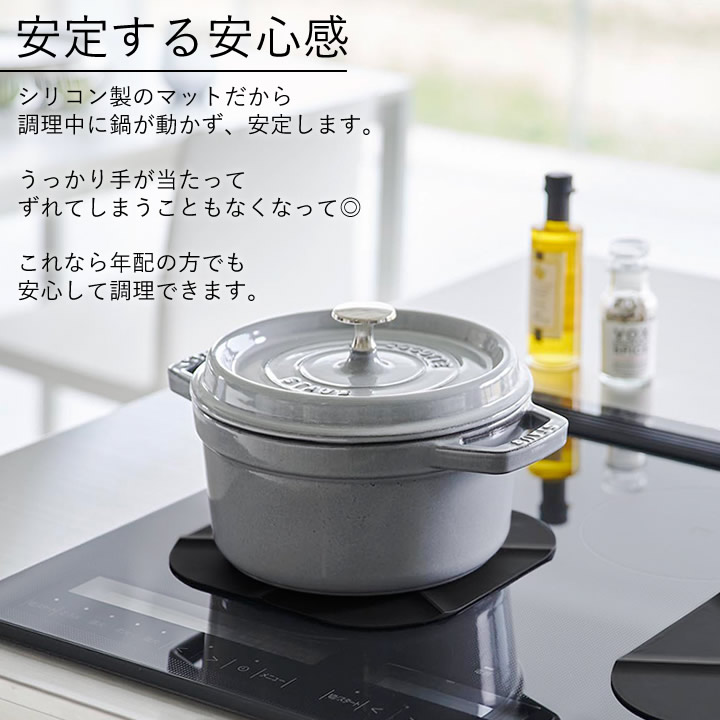 ![]() シリコン製のマットだから調理中に鍋が動かず、安定します。うっかり手が当たってずれてしまうこともなくなって◎これなら年配の方でも安心して調理できます。 |