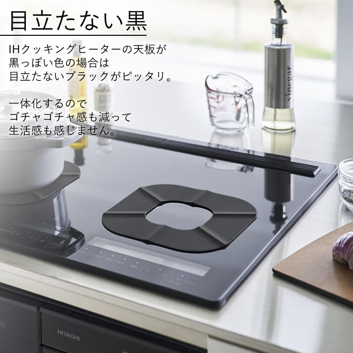 ![]() IHクッキングヒーターの天板が黒っぽい色の場合は、目立たないブラックがピッタリ。一体化するので、ゴチャゴチャ感も減って生活感も感じません。 |