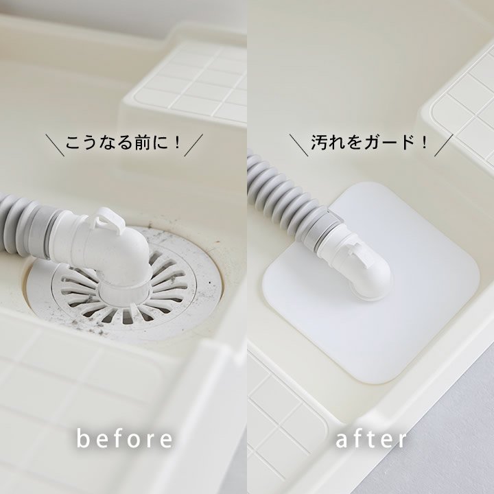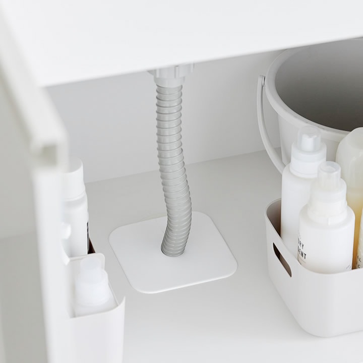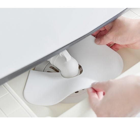 ![]() 洗濯機の排水口だけでなく、キッチンや洗面台のシンク下の排水管周りにも使えます。排水管周りの隙間からの虫の侵入防止カバーとしても大活躍。 |