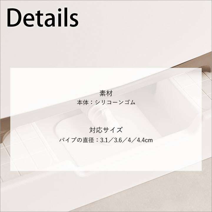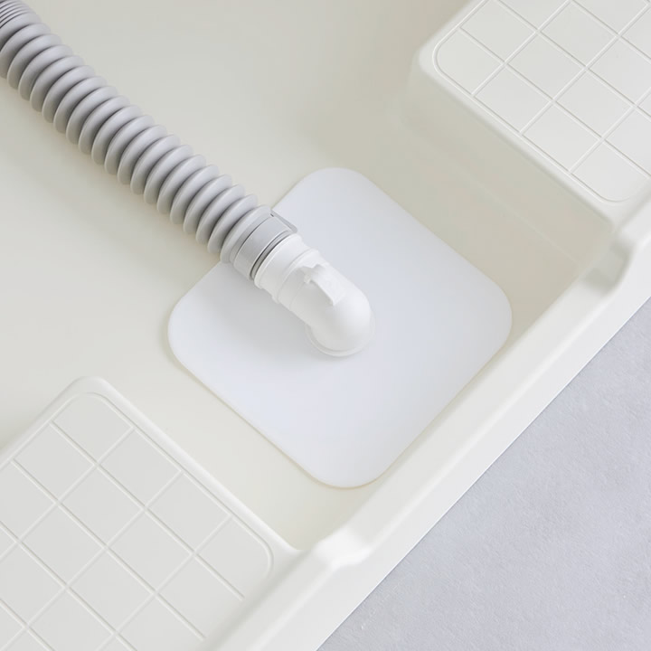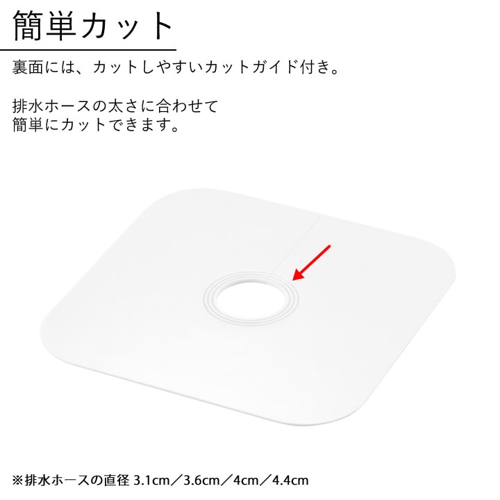 ![]() 裏面には、カットしやすいカットガイド付き。排水ホースの太さに合わせて簡単にカットできます。 |