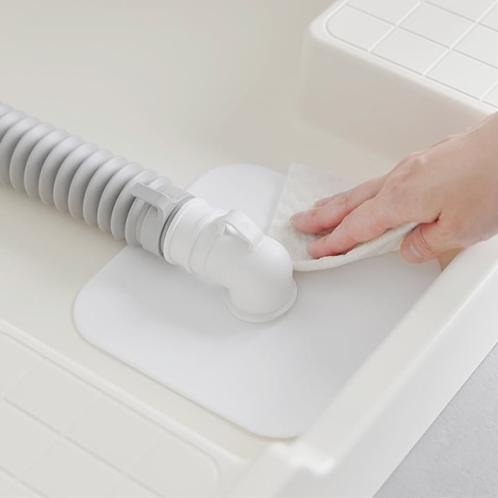 ![]() 日々のお掃除の際は上に付いた汚れをサッと拭き取るだけ。髪の毛やホコリが排水口の隙間に溜まることなく、簡単にお手入れできます。 |