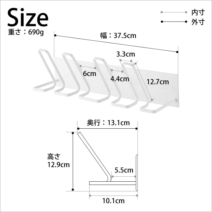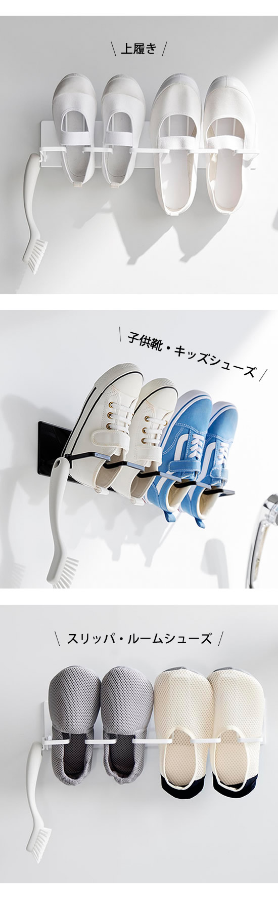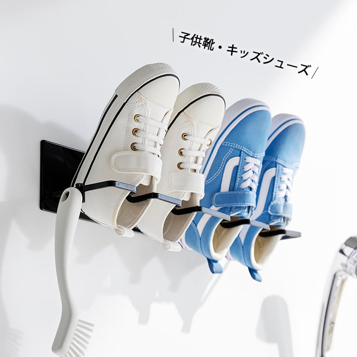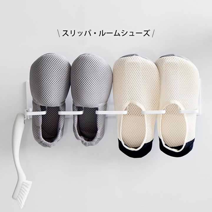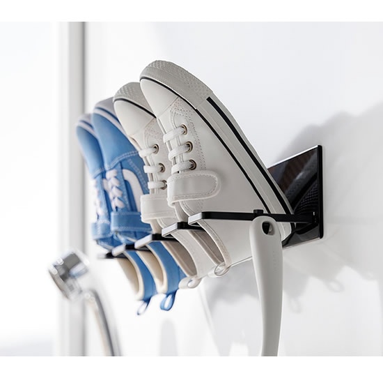 ![]() 靴を干すハンガー部分は、上履きやキッズシューズなどに合わせたサイズ感です。15~24cmの靴を目安に作られています。スムーズに掛けられて、干しやすい設計。 |